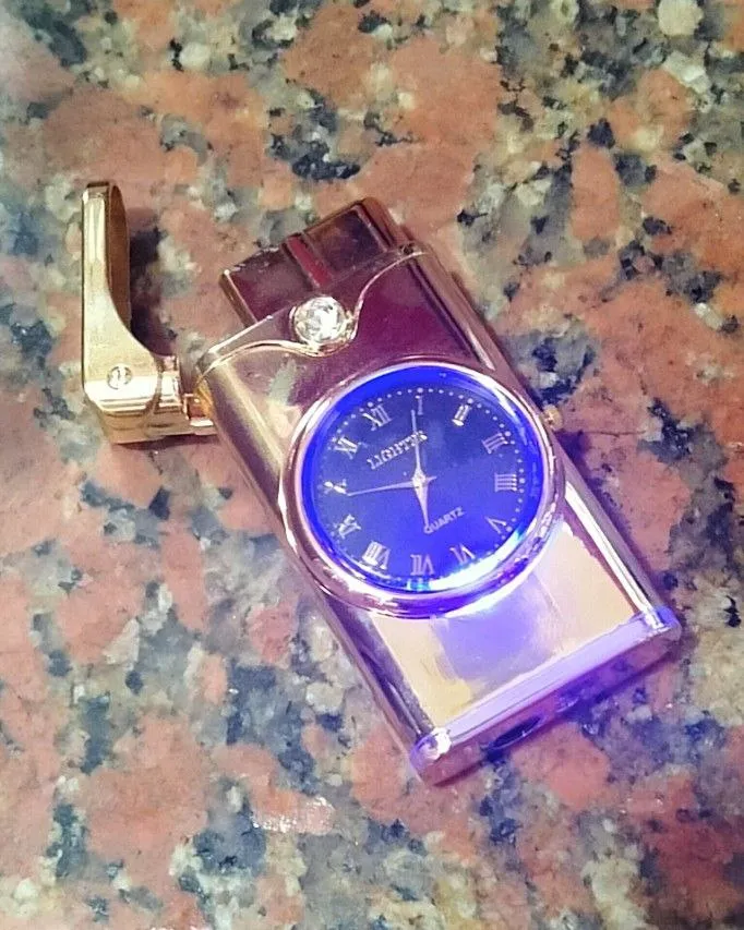 ولاعة غاز ذهبى مزودة بساعة متعددة الاضاءات (code3297)